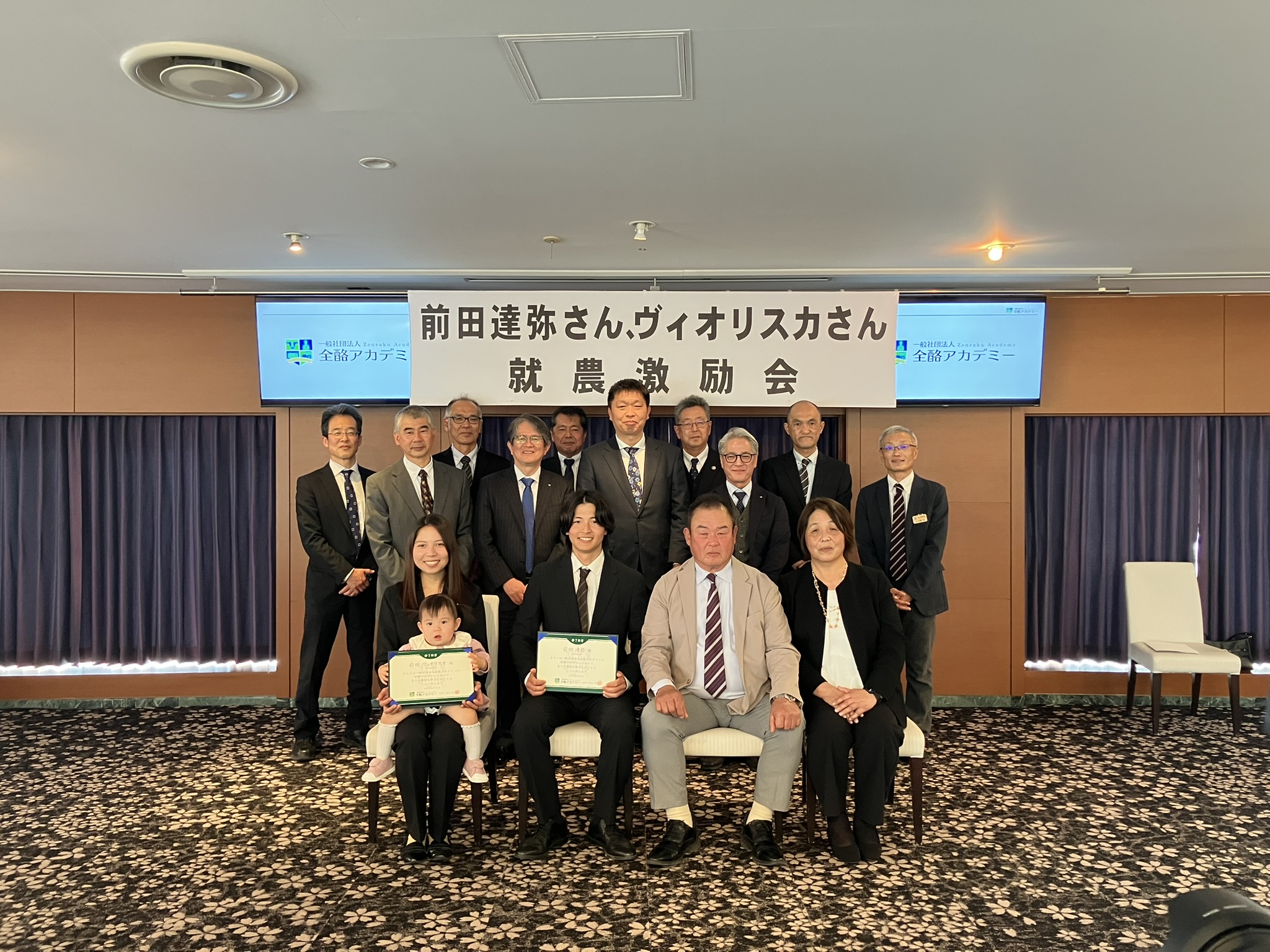 令和8年1月29日(木)、鹿児島県霧島市のホテル京セラにて、令和8年1月1日に就農された前田夫妻を激励する会を開催いたしました。